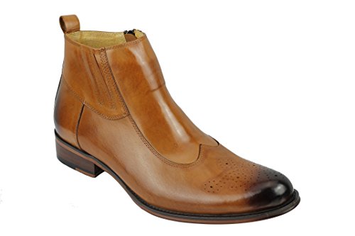 Best Seller! Mens Real Leather Tan Brown Side Zip Retro Brogue Boots Smart Casual Dress Shoes Review